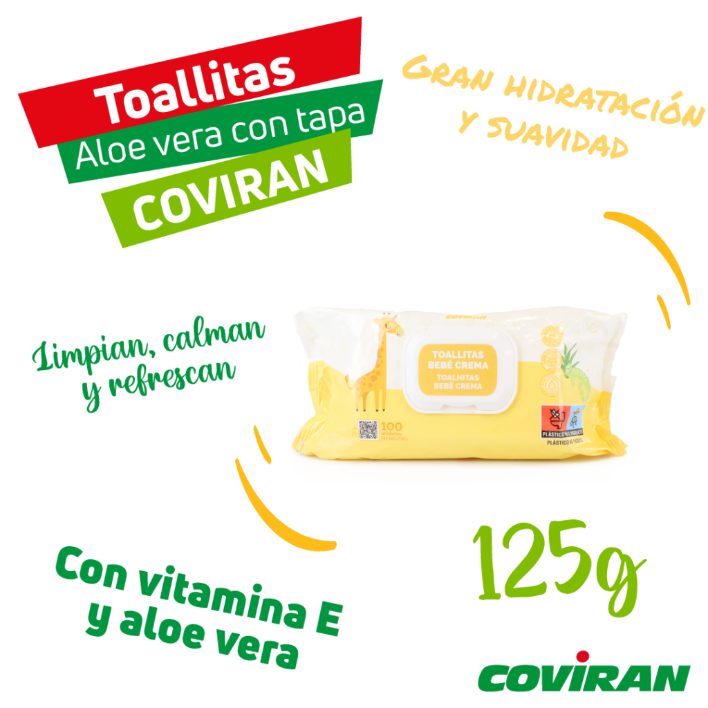 -Las toallitas con aloe vera Covirán limpian, calman y refrescan la piel al mismo tiempo que dejan la sensación de suavidad, reposición y limpieza.