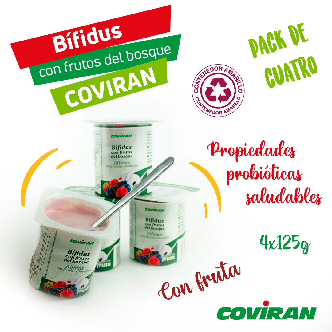 Disfruta del yogur bífidus con sabor frutas del bosque Covirán, ¡sano y sabroso!