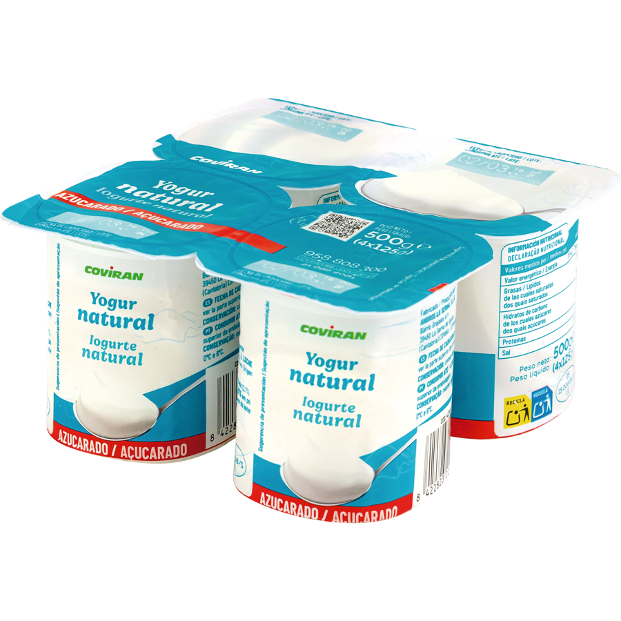 Yogur Natural Azucarado Covirán 4 unid