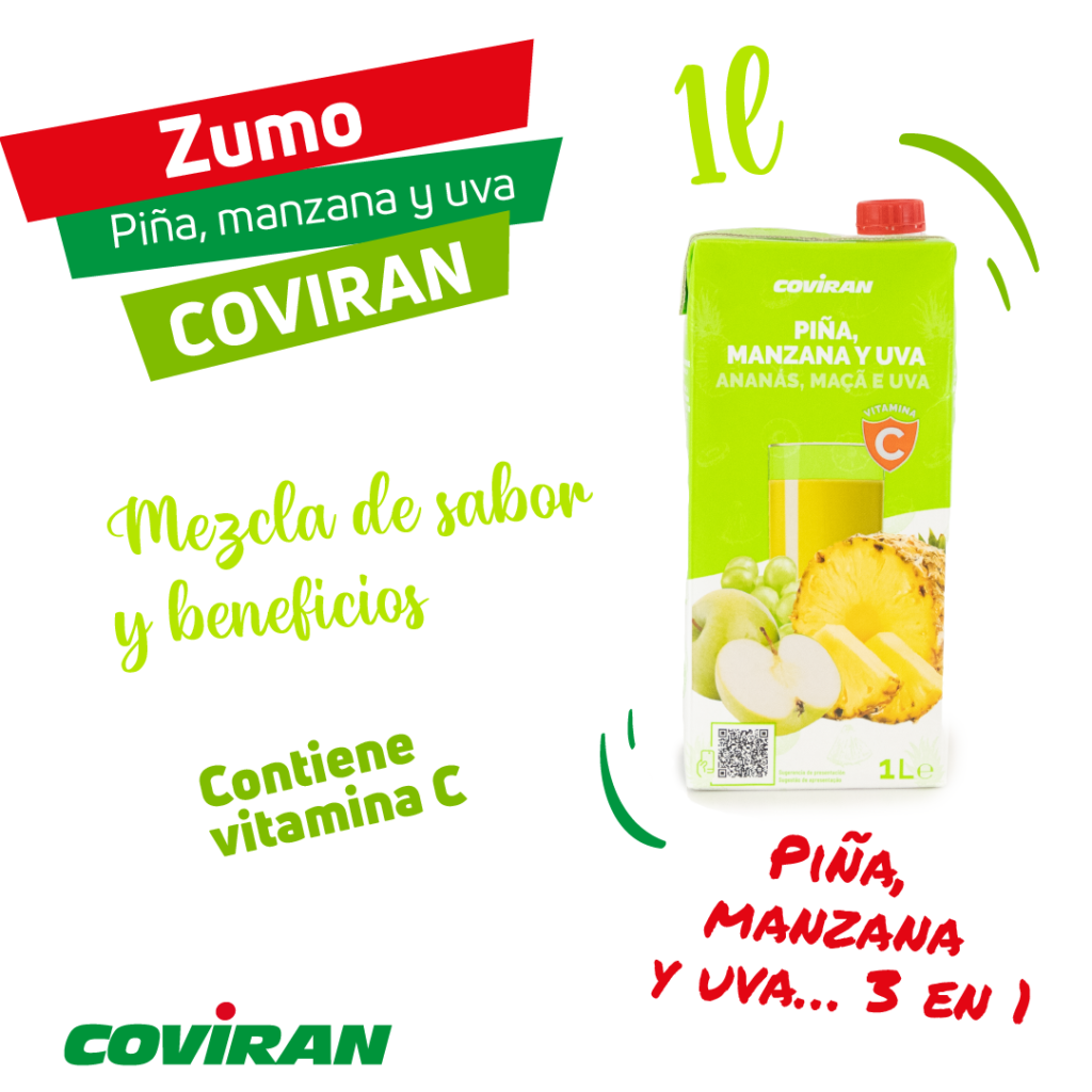 Zumo de piña, manzana y uva Covirán. ¡Fácil de disfrutar, mucho por investigar!